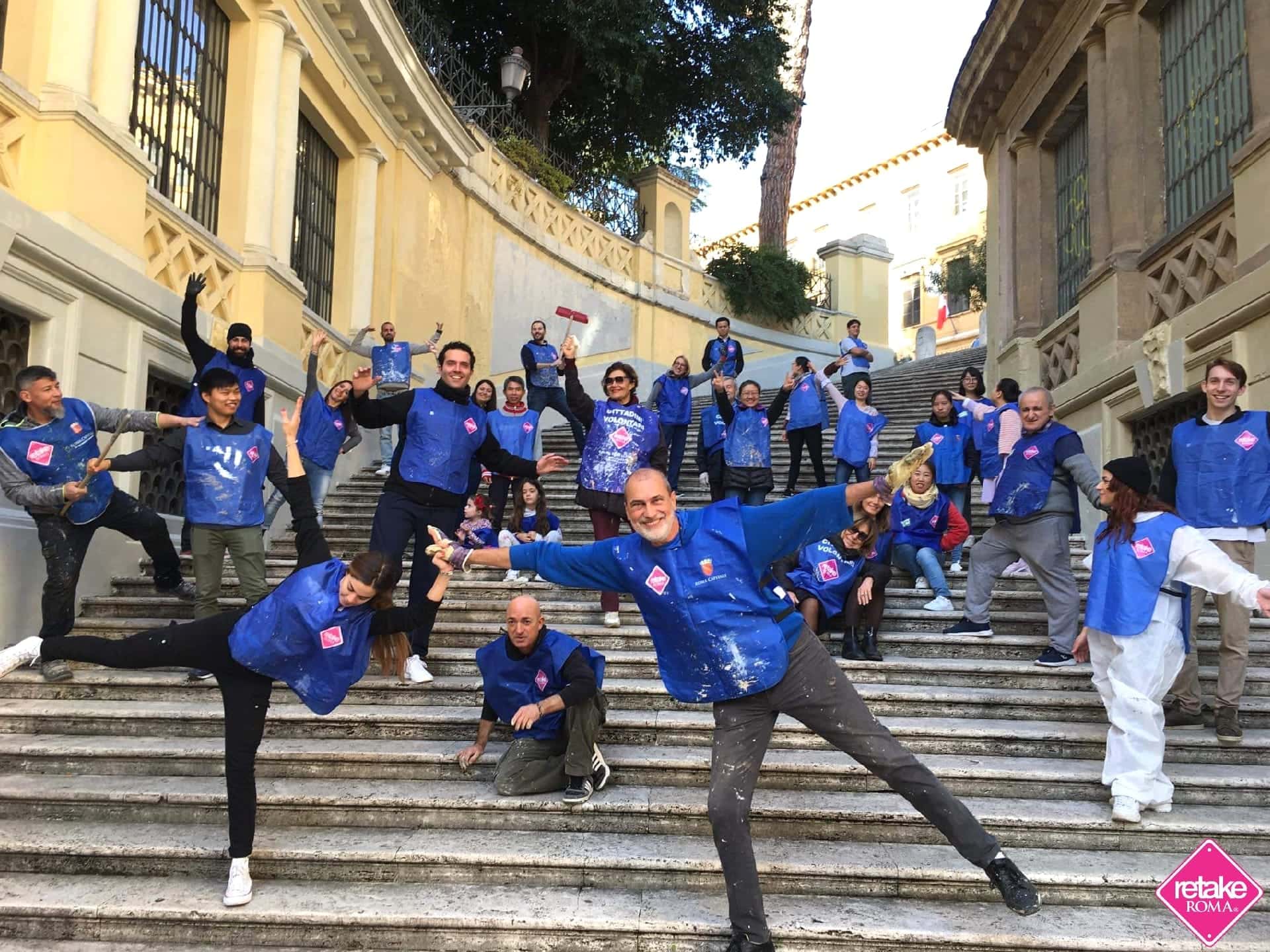 Retake Roma interviene su Piazza Iside: rimozione di tag e stickers e pulizia aiuole