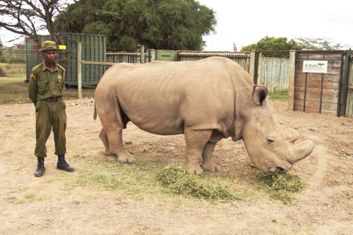 Il rinoceronte bianco settentrionale è andato molto vicino all’estinzione nel 2018 quando l’ultimo esemplare maschio vivente è morto nella riserva di Ol Pejeta in Kenya. Gli ultimi rinoceronti bianchi settentrionali attualmente rimasti sono due femmine, madre e figlia, che vivono nella riserva. Prima della morte del maschio, i ricercatori sono riusciti a raccogliere lo sperma dell’animale per creare tre embrioni in laboratorio grazie agli ovuli raccolti dagli altri due esemplari. Lo scopo è quello di utilizzare gli embrioni per fecondare artificialmente alcuni esemplari femmina del rinoceronte bianco meridionale, una specie geneticamente simile alla controparte settentrionale che però non rischia l’estinzione.