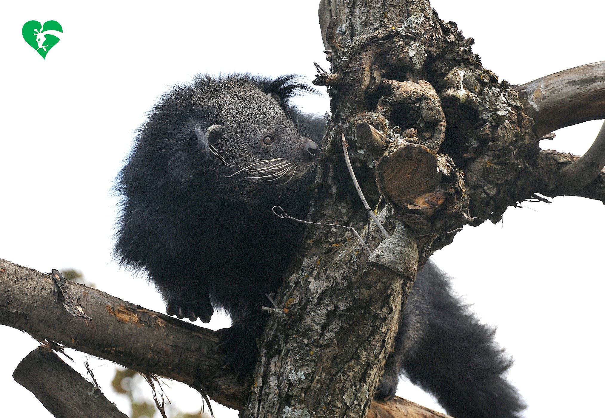 Binturong, nella lingua malese, significa ”orso gatto”, sebbene l’animale non abbia affinità né con i gatti né con gli orsi: appartiene all’ordine dei carnivori, ma si nutre anche di frutti e fiori, e abita le foreste tropicali del sud-est asiatico, fino a 3.000 m di altitudine.