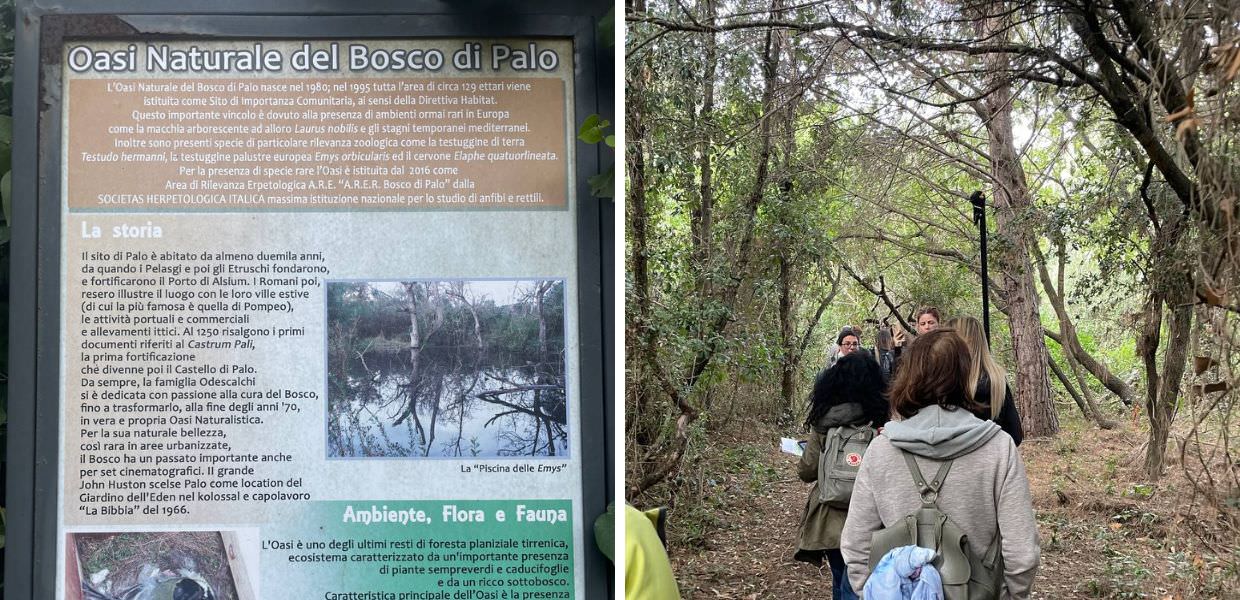 Per conoscere il progetto siamo stati nell’Oasi di Palo Laziale, un laboratorio a cielo aperto, un bosco di 50 ettari dove è stato possibile osservare le azioni di ripristino degli ecosistemi, nello specifico dei boschi mediterranei. Ad oggi sono 2.500 le piante messa a dimora.