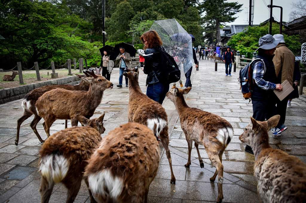 Nella zona di Nara i cervi vagano tranquillamente tra auto e turisti, ormai abituati alla presenza umana. Spesso avvicinano i turisti alla ricerca di cibo, arrivando anche a spintonare le persone o a seguirle in gruppi.