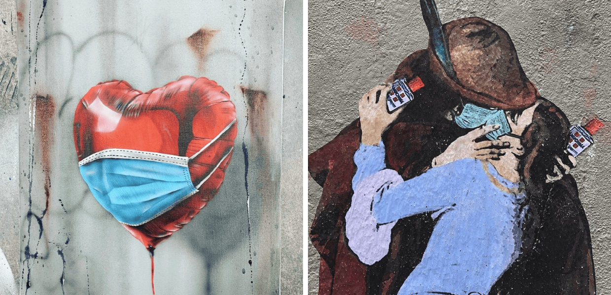 Tra i temi più affrontati l’amore al tempo del covid-19. A rappresentarlo l’ opera di C215 a Parigi, L’Amour au temps du Coronavirus. L’artista ha lanciato un’edizione artistica i cui proventi andranno a beneficio della Fondation des Hôpitaux de France.