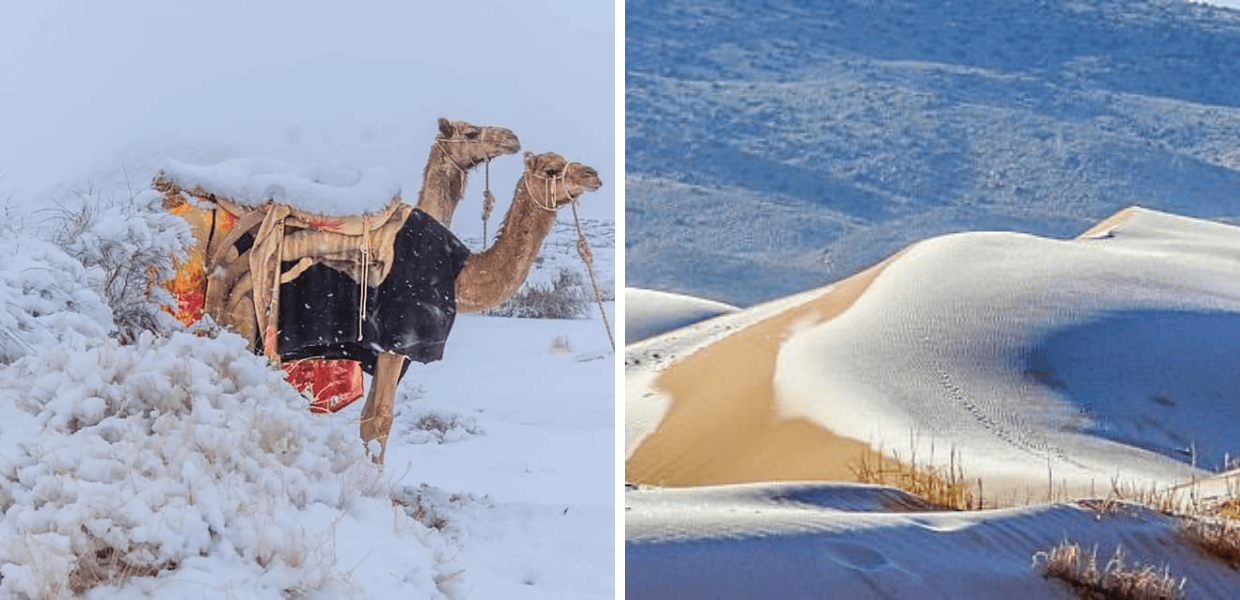 Neve nel deserto del Sahara, le incredibili immagini delle dune imbiancate