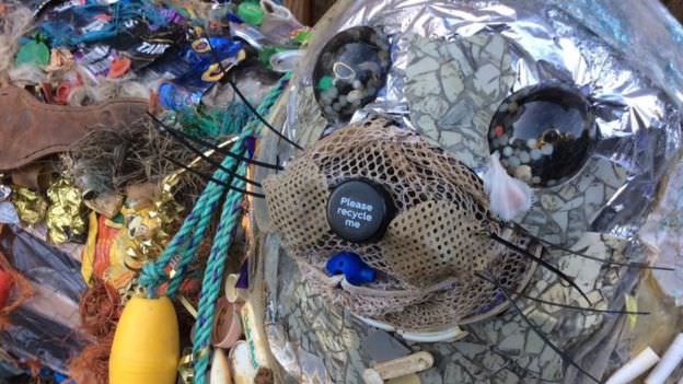 Plastica, un foca realizzata con rifiuti raccolti in spiaggia