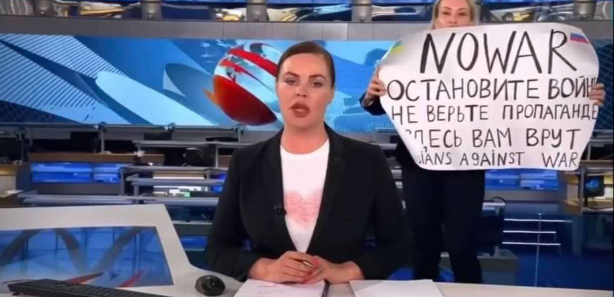 Il video della giornalista russa che irrompe nello studio del Tg con il cartello contro il Cremlino