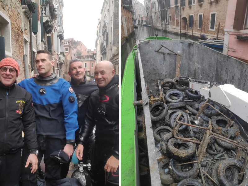 Si tratta della prima di tre uscite in programma nelle prossime settimane frutto di una convenzione con il Comune di Venezia che si pone l’obiettivo di rimuovere soprattutto pneumatici finiti in acqua dopo essere stati utilizzati come parabordi delle imbarcazioni o rifiuti ingombranti depositati sui fondali.
